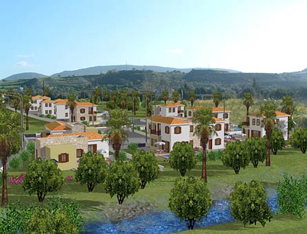 The Riverside complex in Goudi consists of 14 properties on plot sizes ranging from 240†sq.m. to 525 sq.m. all with 8m x 4m private swimming pools. Choose from two or three bedroom villas, bungalows and semi-detached villas, all designed with quality and tradition in mind. Goudi is a lovely little village with a small river crossing it, a historical bridge and orange groves as far as you can see. Situated along the Chrysochou valley and on the bank of the Chrysochou river, Goudi is a very quiet village and contains a mixture of traditional and modern houses. It is 4km from Polis and its amenities and attractive beaches. The Chrysochou valley is famous for its orange and lemon groves and numerous blossoming almond trees in spring.