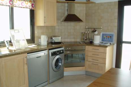 Spacious first floor master bedroom large elevated balcony first floor bathroom and shower and large guest bedroom. Ground floor comprises attractive third bedroom with patio door access large open plan living room with wood burning fire. Spacious fitted kitchen with all appliances including, dishwasher, washing machine ,fridge freezer etc.